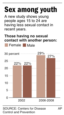 UPDATES to conform with story; graphic shows percent change in sexual behavior between 2002 and 2006-2008 among ages 15-